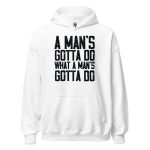 Our hip-hop-inspired T-Shirt bridges the gap between music and fashion, allowing wearers to express their affinity for the genre’s raw energy and authentic storytelling. The A Man’s Gotta Do What A Man’s Gotta Do T-Shirt is not just an item of clothing; it’s a badge of honor for those who live by the ethos of doing whatever it takes to reach their goals. Made for day-to-day resilience and styled for universal appeal, this T-Shirt meshes seamlessly with any casual wardrobe.