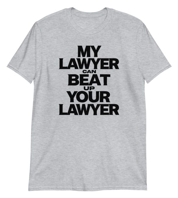 Challenge your friends to decipher the inspiration behind this creatively charged design. It’s more than just a T-Shirt; it’s a statement piece with a story. Grab your My Lawyer Can Beat Up Your Lawyer T-Shirt today and enjoy the blend of wit, originality, and cultural homage.
